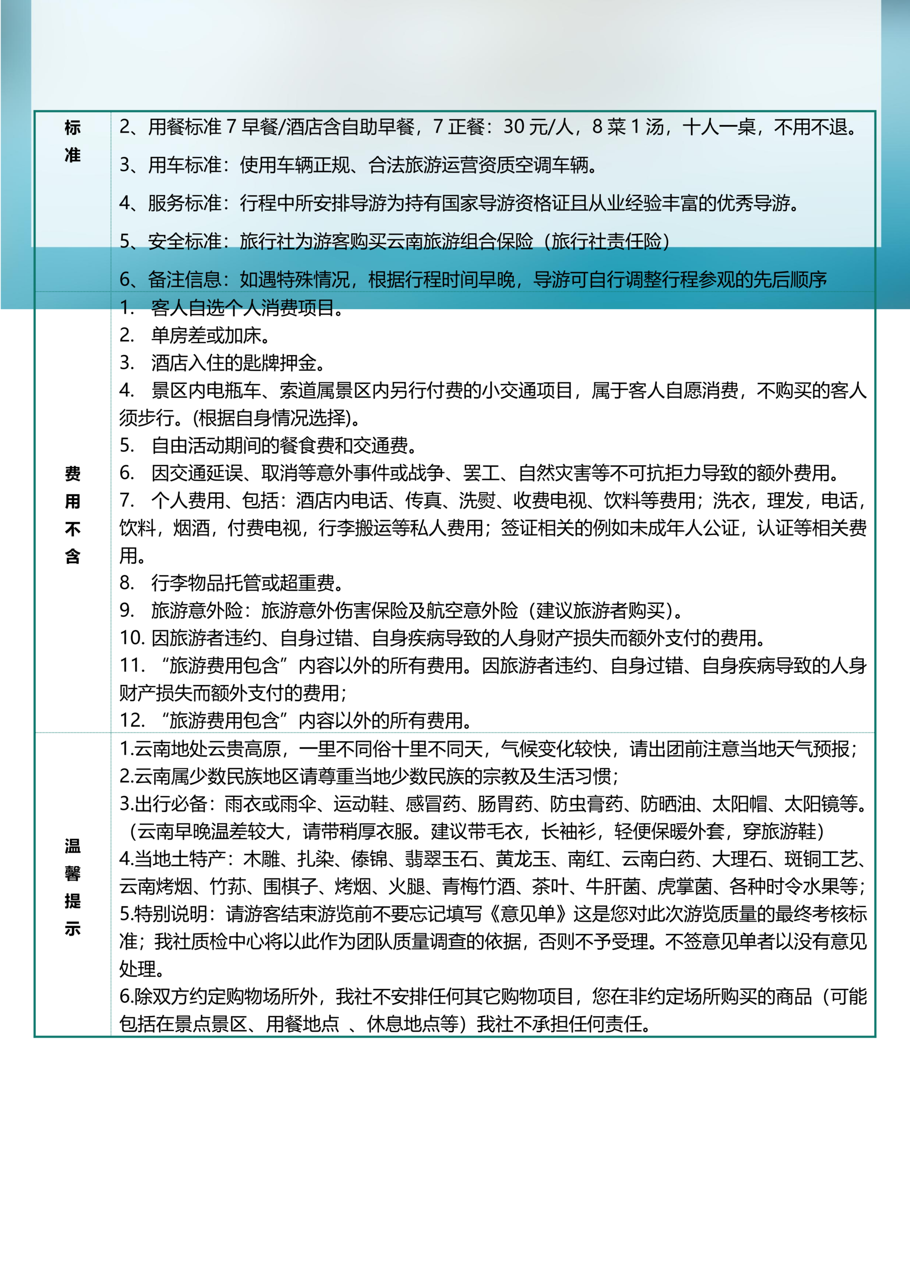 云南之旅详细行程